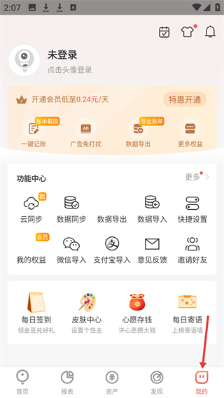 3、我的板塊可查看會員權(quán)益、功能中心及日常功能入口,如每日簽到、皮膚中心等,方便用戶管理個人賬號與功能設(shè)置。