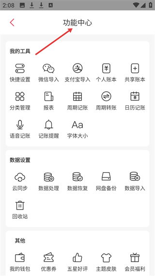 4、功能中心板塊涵蓋我的工具、數(shù)據(jù)設(shè)置及其他功能,功能豐富,滿足用戶多樣記賬與數(shù)據(jù)管理需求。