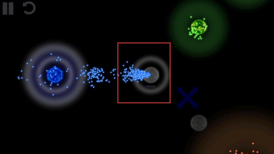 1、操控藍色粒子團,讓其向目標(biāo)區(qū)域移動,利用粒子團的聚集力量,去沖擊或?qū)蛊渌W訄F,拓展自身勢力范圍。