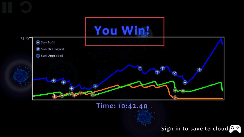 3、成功擊敗對手粒子團后,游戲獲勝,會顯示勝利界面以及相關(guān)數(shù)據(jù)統(tǒng)計,可借此回顧戰(zhàn)斗過程,為后續(xù)挑戰(zhàn)積累經(jīng)驗。