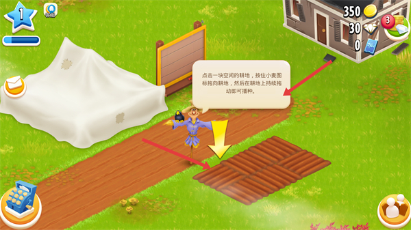 4、在空閑的耕地上,點擊耕地,按住小范圍移動耕地,然后在耕地上持續(xù)滑動,即可播種,開始新的種植周期。