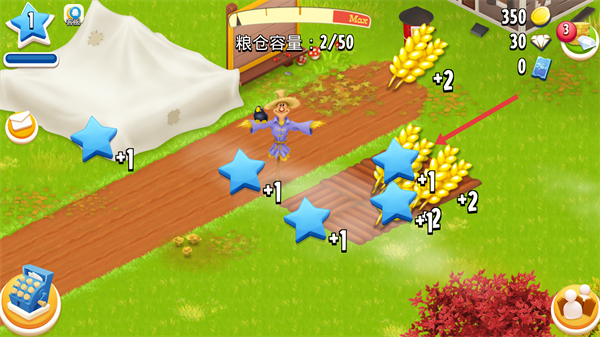 3、收割小麥后,會獲得小麥和經(jīng)驗星星,經(jīng)驗星星可提升農(nóng)場等級,小麥可用于后續(xù)種植或其他用途。