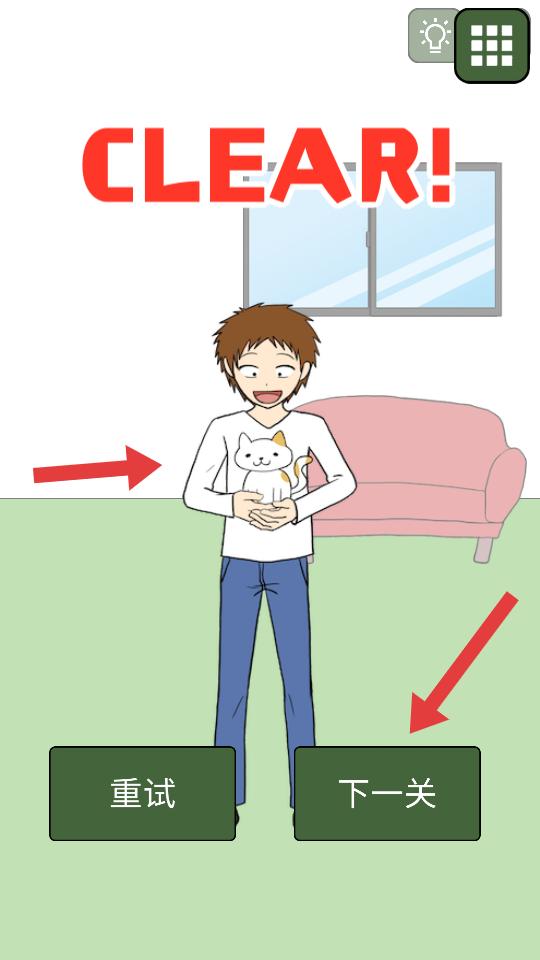 4、成功找到貓咪后,界面會顯示CLEAR,此時可以選擇【重試】重新玩這一關(guān),或者點擊下一關(guān)繼續(xù)尋找貓咪。