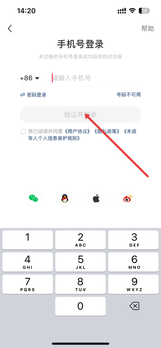 2、若選擇手機號登錄,進入手機號登錄頁面,輸入手機號碼,可選擇密碼登錄或驗證碼登錄,也能選擇微信、QQ等其他登錄方式。