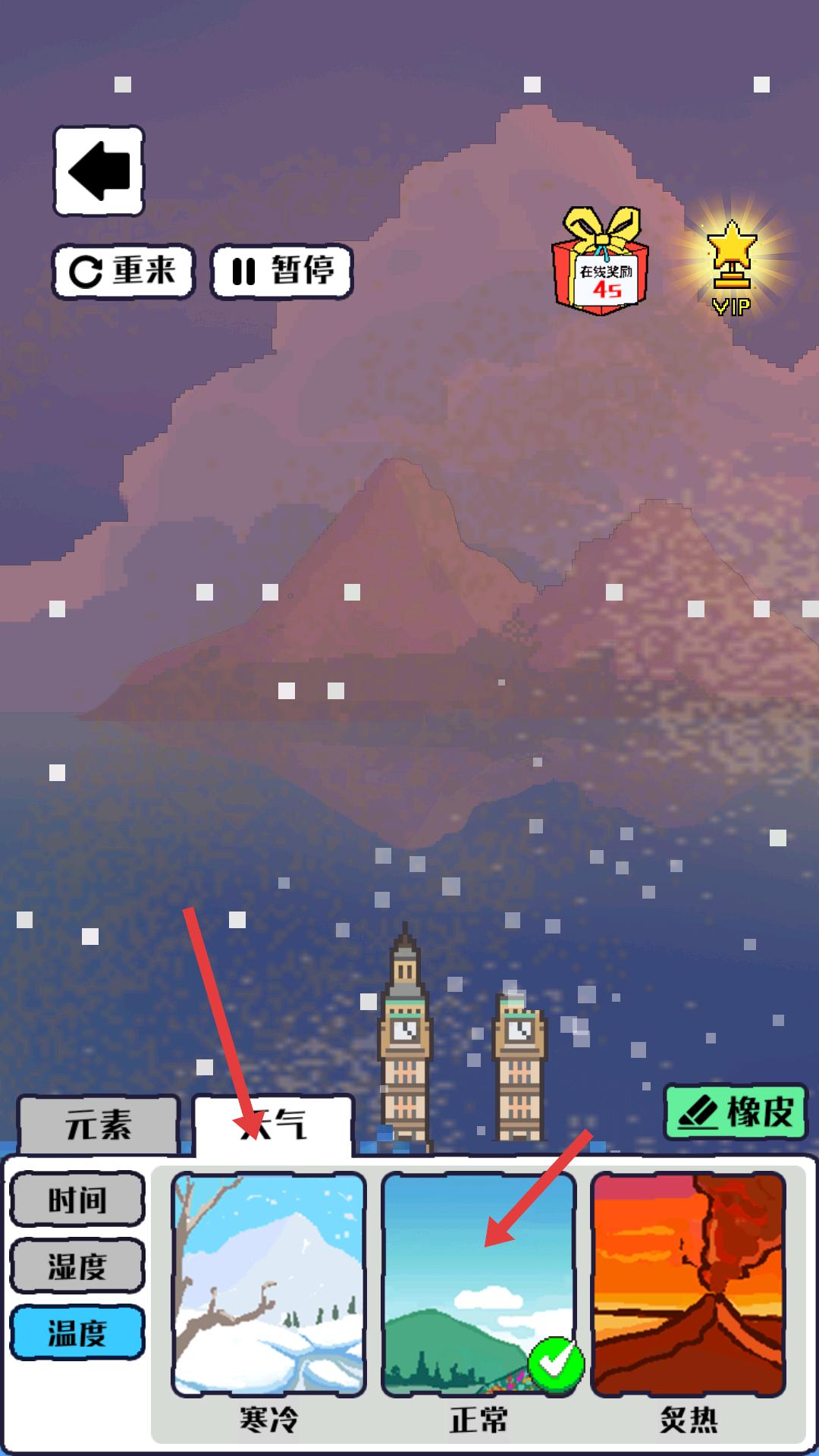 4、在天氣設(shè)置里,選擇溫度相關(guān)選項,點擊正常溫度類型,調(diào)節(jié)場景的溫度情況,讓世界環(huán)境更符合預(yù)期。