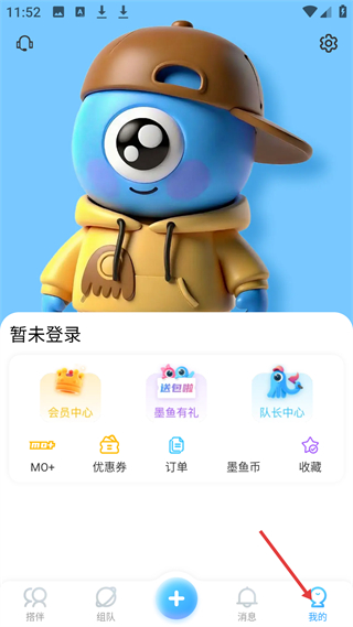 4、我的板塊暫未登錄時(shí),有會(huì)員中心、墨魚(yú)有禮、隊(duì)長(zhǎng)中心等功能,還有MO+、優(yōu)惠券、訂單等服務(wù)入口,方便用戶(hù)管理個(gè)人相關(guān)內(nèi)容。