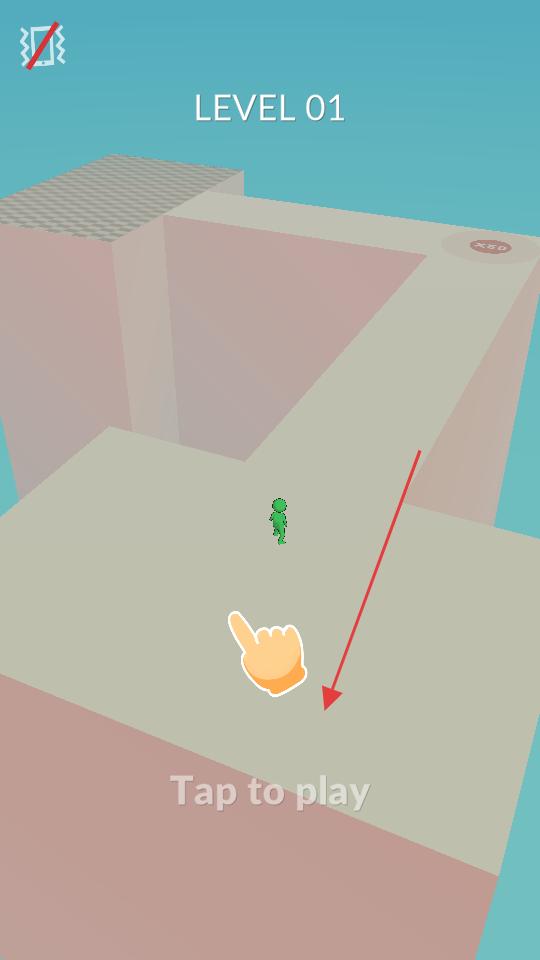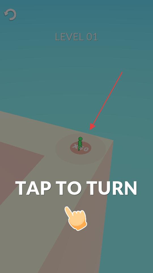 2、小人移動過程中當(dāng)出現(xiàn)Taptoturn提示或到達(dá)需要轉(zhuǎn)向的位置時(shí),點(diǎn)擊屏幕,讓小人改變方向,沿著正確路徑前進(jìn),避免掉落。