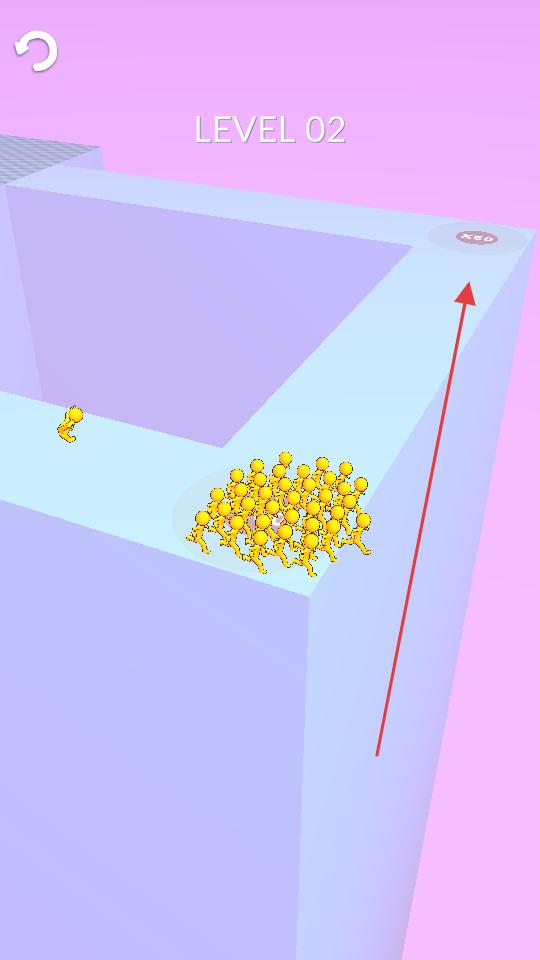 3、進(jìn)入LEVEL02,引導(dǎo)小人移動,匯聚更多同伴,朝著帶有EXIT的目標(biāo)區(qū)域前進(jìn),過程中注意路徑走向,確保小人隊(duì)伍順利移動。