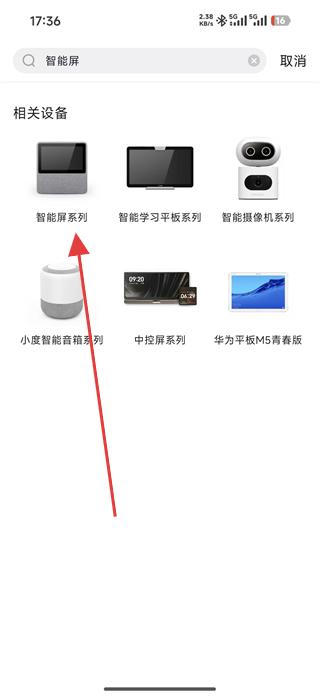 3、在搜索結(jié)果中選擇感興趣的設(shè)備系列,如智能屏系列,點(diǎn)擊進(jìn)入該系列設(shè)備的添加頁(yè)面。
