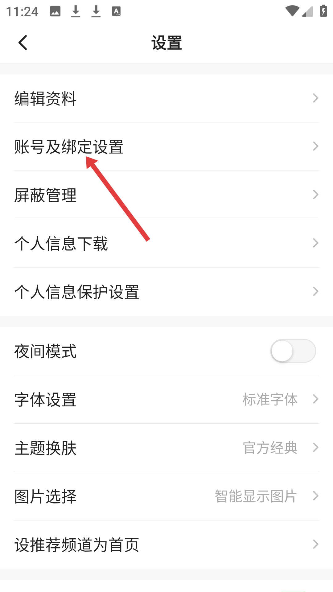 1、打開(kāi)app進(jìn)入設(shè)置界面,在設(shè)置列表里找到賬號(hào)及綁定設(shè)置選項(xiàng),點(diǎn)擊進(jìn)入這里可對(duì)賬號(hào)相關(guān)綁定信息進(jìn)行管理,是注銷賬號(hào)的前置步驟。