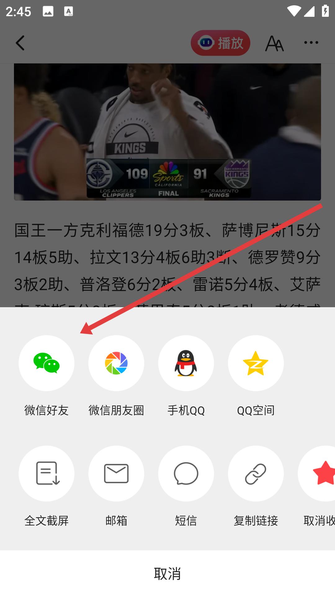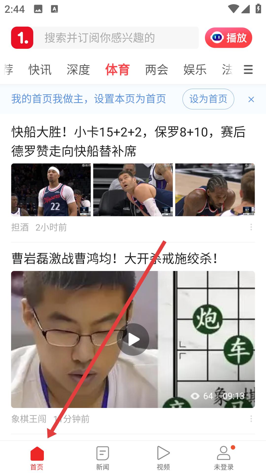1、進(jìn)入首頁(yè)在頁(yè)面上方的分類欄里點(diǎn)擊體育分類,瀏覽展示的體育新聞列表,找到關(guān)于快船比賽的新聞,點(diǎn)擊進(jìn)入該新聞詳情頁(yè)面。