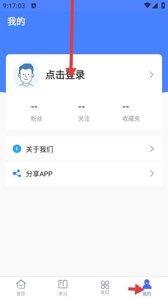 1、我的頁面頭像旁醒目提示點(diǎn)擊登錄,粉絲關(guān)注收藏夾數(shù)據(jù)暫呈空白待激活,點(diǎn)擊該區(qū)域即可跳轉(zhuǎn)至登錄界面,開啟賬號(hào)訪問學(xué)習(xí)資源的第一步。