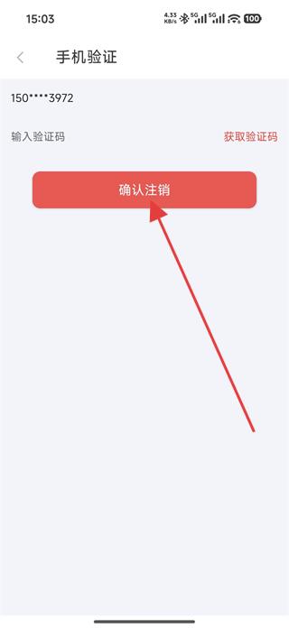 4、在手機(jī)驗(yàn)證頁(yè)面,輸入綁定手機(jī)號(hào)收到的驗(yàn)證碼,確認(rèn)驗(yàn)證碼無(wú)誤后,點(diǎn)擊確認(rèn)注銷,完成賬號(hào)的注銷操作。