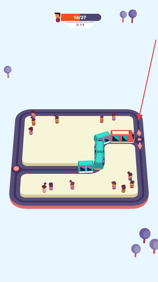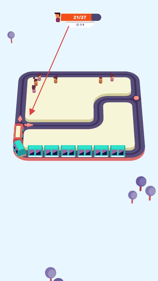 1、進(jìn)入關(guān)卡1看到軌道上分布著待接送的乘客,滑動屏幕操控列車在軌道上行駛,開啟乘客接送的闖關(guān)過程。
