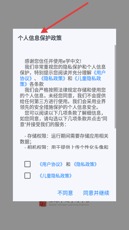 1、個人信息保護政策界面,感謝用戶信任,強調(diào)重視隱私保護,提示閱讀并理解相關協(xié)議條款,有同意與不同意選項。