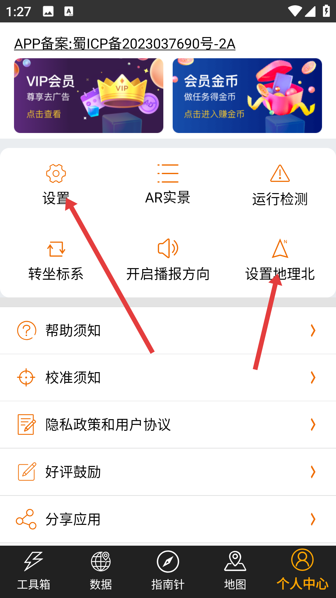1、在個人中心頁面找到設置按鈕點擊進入,同時可留意設置地理北選項,這些是調整軟件定位相關參數的關鍵入口,通過它們能開啟個性化設置流程,讓軟件更貼合使用需求。