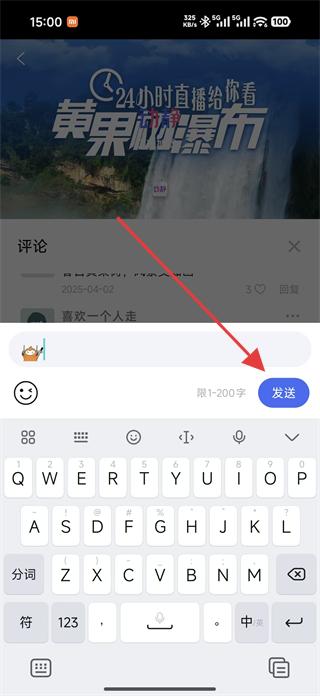 3、在評(píng)論輸入頁(yè)面輸入想要發(fā)表的評(píng)論內(nèi)容,然后點(diǎn)擊發(fā)送完成評(píng)論發(fā)布操作。