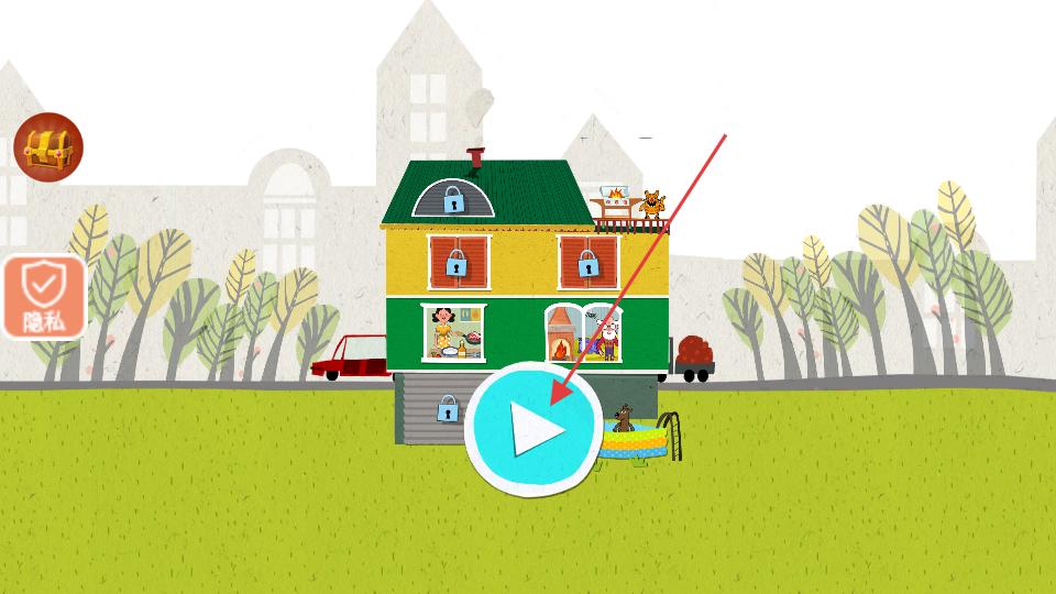 1、點擊小屋前的播放按鈕,進入游戲場景此時能看到多層小屋結(jié)構(gòu),部分房間帶有鎖具,開始探索可進入的房間區(qū)域。
