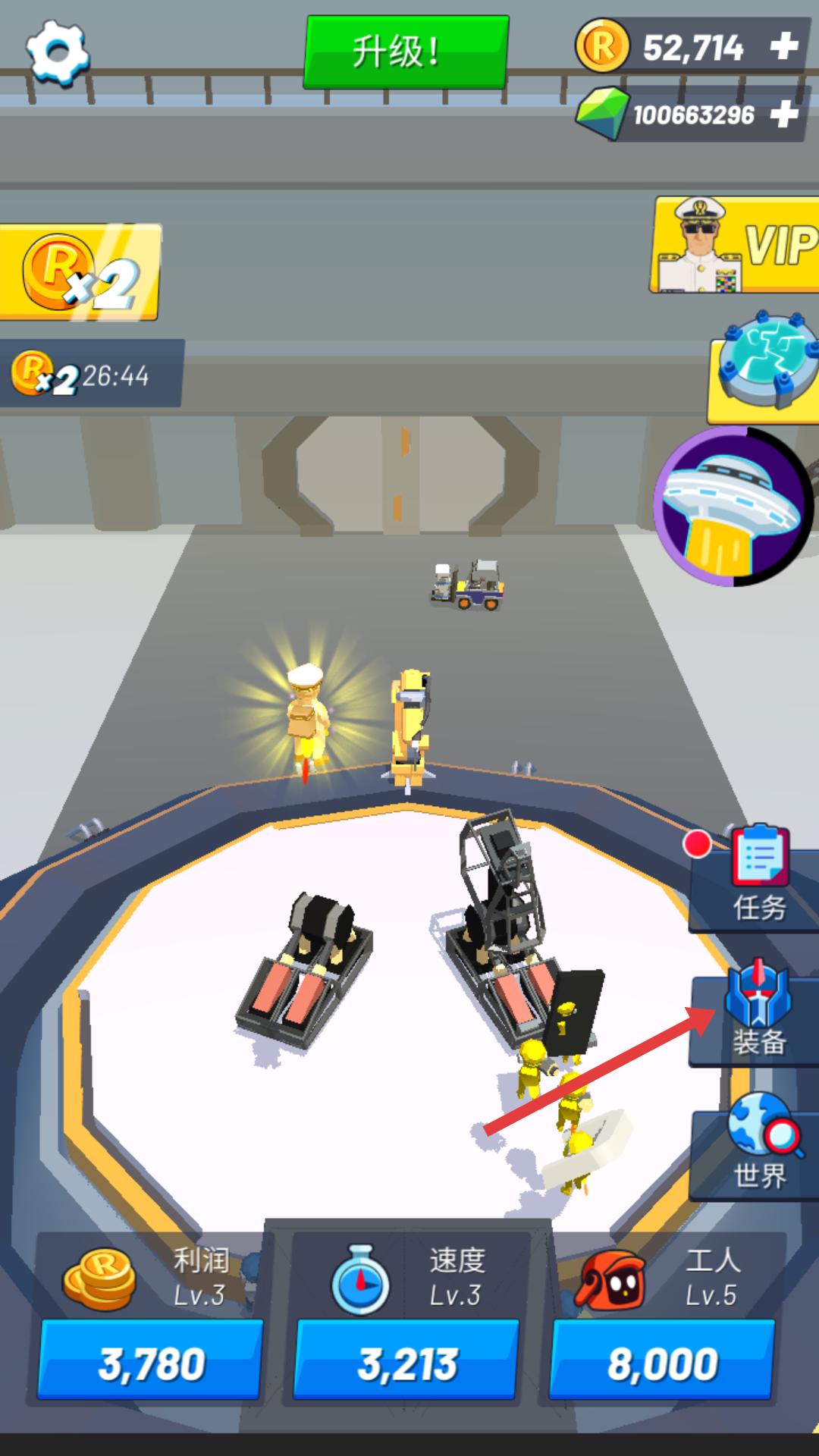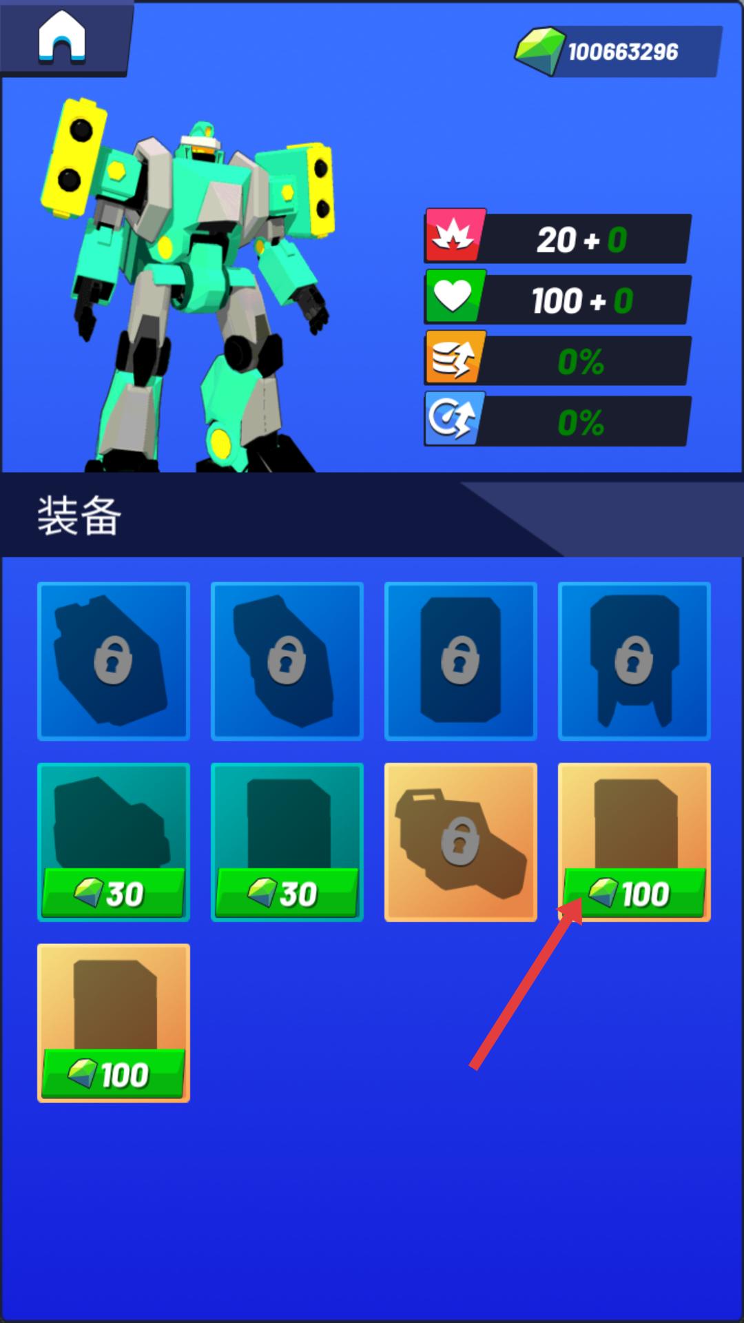 1、游戲界面右側有裝備按鈕,點擊可進入裝備界面,在那里能查看和管理機器人的裝備,提升機器人性能。
