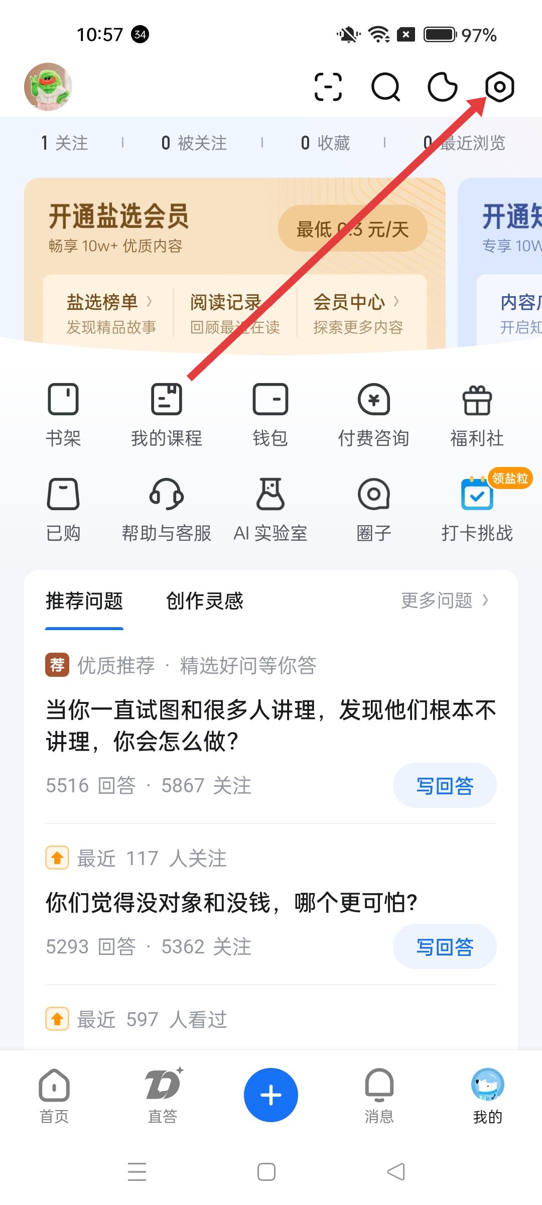 2、進入我的界面后,右上角能看到設置圖標,點擊該圖標,就可以進入設置頁面,尋找退出賬號的選項。