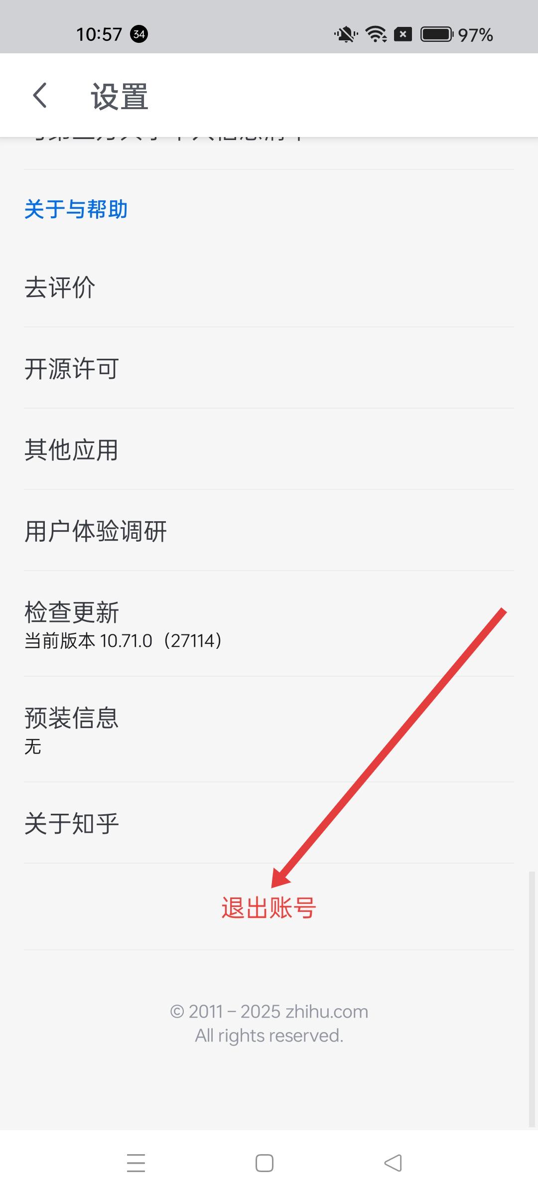 3、設置頁面里,向下滑動找到退出賬號選項,點擊它會彈出確認退出的提示框,準備進行最終確認。