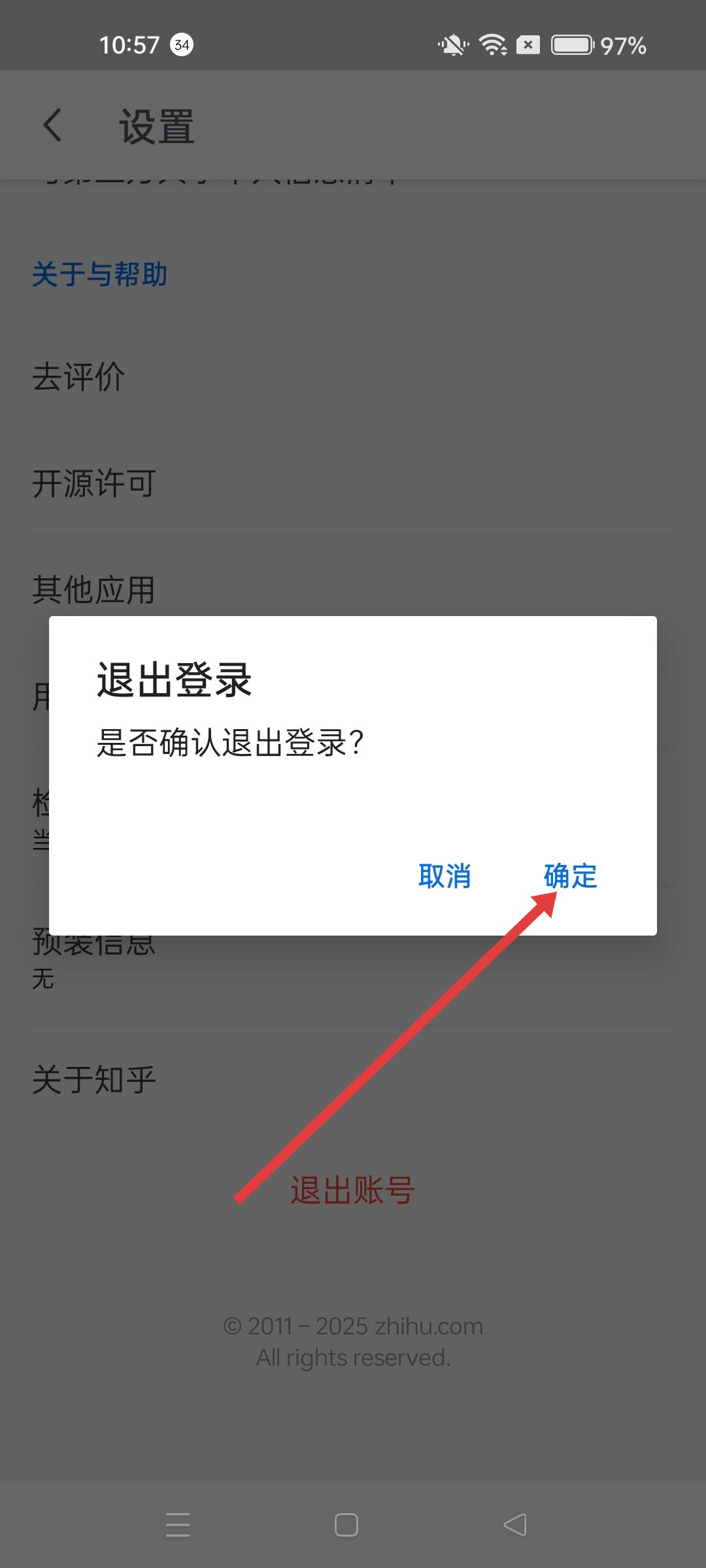4、看到彈出的退出登錄提示框,上面詢問是否確認退出登錄,點擊確定按鈕,就能完成賬號退出操作。