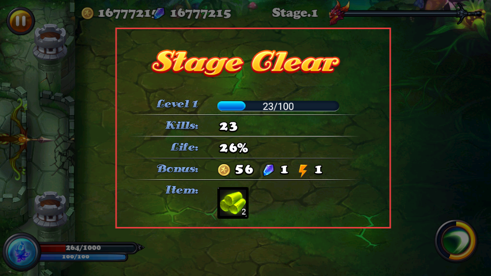 3、成功消滅所有敵人后,會(huì)顯示Stage Clear界面,可查看關(guān)卡完成情況,包括擊殺數(shù)、獲得的獎(jiǎng)勵(lì)等,然后繼續(xù)挑戰(zhàn)下一關(guān)。