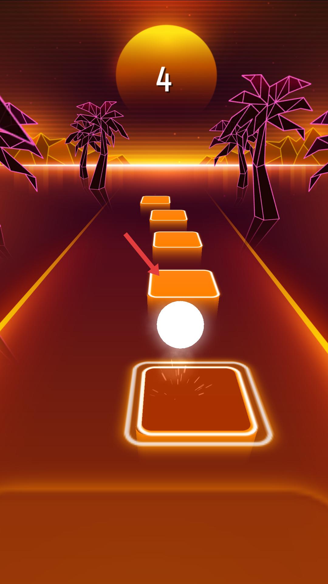 2、進入游戲后,需操控白球在橙色方塊路徑上移動,要精準落在方塊上,保持移動的節(jié)奏,跟隨方塊的排列推進游戲。