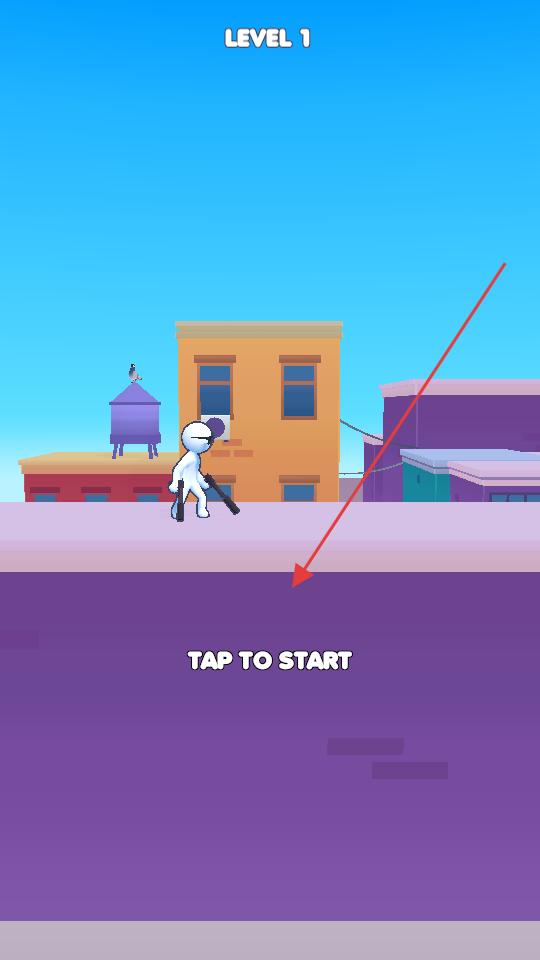 1、進(jìn)入游戲第一關(guān)界面畫(huà)面中有白色火柴人站在城市建筑旁,下方有開(kāi)始提示,點(diǎn)擊屏幕,讓白色火柴人開(kāi)始行動(dòng),準(zhǔn)備進(jìn)入戰(zhàn)斗場(chǎng)景。