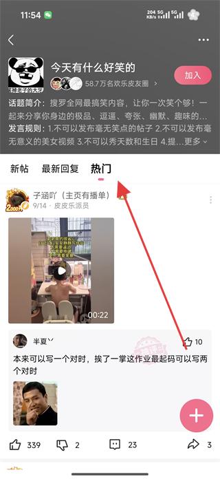 3、進(jìn)入今天有什么好笑的話題頁(yè)面,能看到新帖、最新回復(fù)、熱門(mén)等分類(lèi),還有各類(lèi)搞笑內(nèi)容展示,點(diǎn)擊熱門(mén)分類(lèi),查看熱門(mén)的搞笑帖子。