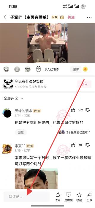4、在熱門(mén)帖子里選擇子涵吖發(fā)布的帖子,進(jìn)入帖子詳情頁(yè)面,可見(jiàn)視頻內(nèi)容,還有其他用戶的評(píng)論,點(diǎn)擊寫(xiě)評(píng)論欄,可輸入評(píng)論內(nèi)容和其他用戶互動(dòng)。