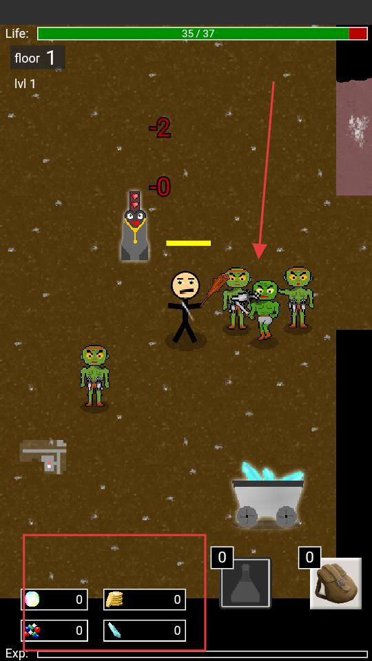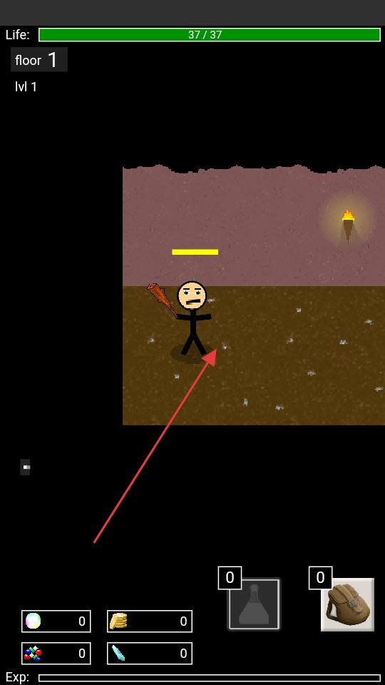2、在地牢第一層按住屏幕往前移動,收集戰(zhàn)斗掉落物品,推進(jìn)游戲進(jìn)度。