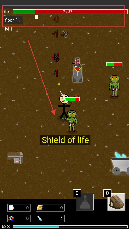 4、戰(zhàn)斗中生命值降低,出現(xiàn)Shieldoflife效果時(shí),借助護(hù)盾抵御傷害,與怪物周旋,擊敗更多敵人,積累經(jīng)驗(yàn)提升等級。