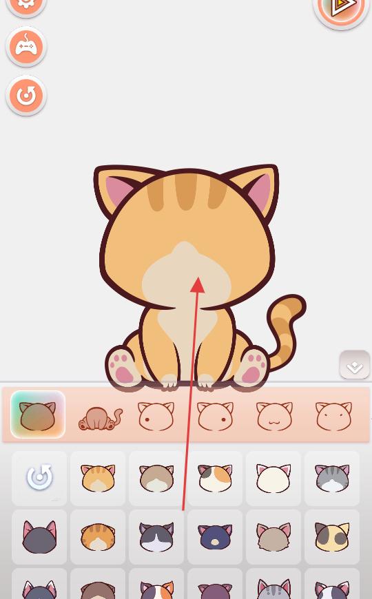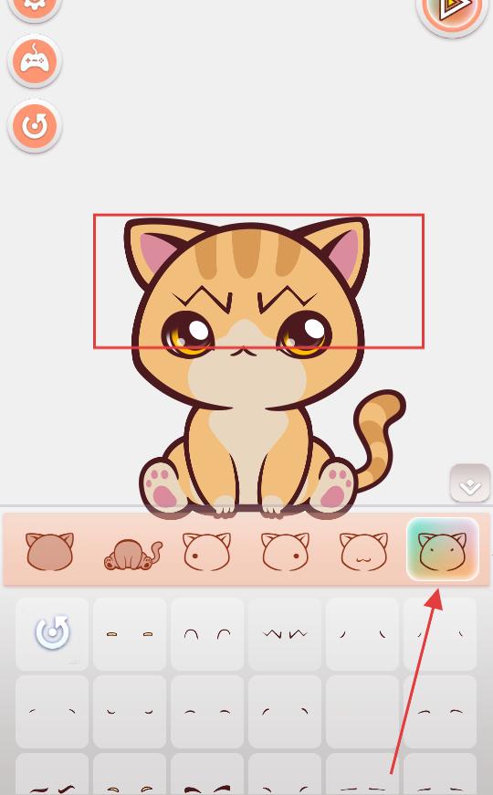 2、在界面下方的部件欄中,選擇喜歡的貓咪頭部樣式,貓咪的頭部會隨之變化,可多次嘗試不同頭部,挑選最滿意的那一個。