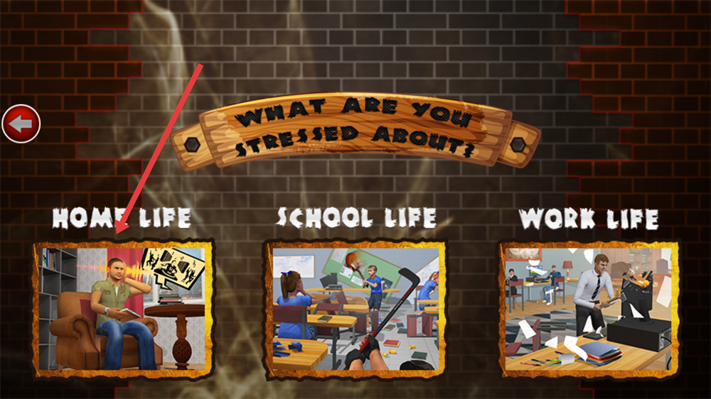 2、在壓力場景選擇界面,根據(jù)自身情況,從家庭生活學(xué)校生活工作生活等場景,選擇一個(gè)想要釋放壓力的場景進(jìn)入。