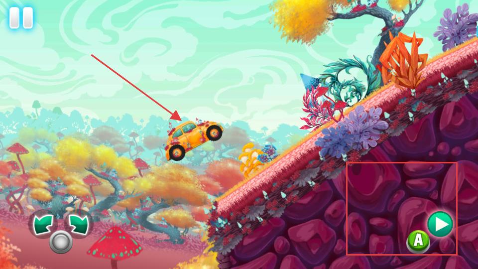 2、在游戲場景里點擊右側(cè)的前進(jìn)按鈕,讓小車開始行駛,沿著森林中的道路前進(jìn),同時留意道路的坡度和周圍的奇幻元素。