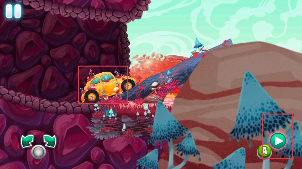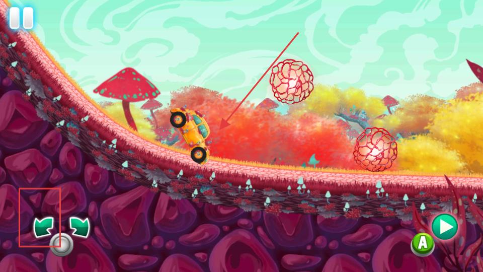 4、持續(xù)點擊前進(jìn)按鈕使小車在森林道路上行駛,穿越帶有蘑菇、彩色植物等元素的區(qū)域,躲避途中的球形障礙,推進(jìn)冒險進(jìn)程,探索更多奇幻森林場景。