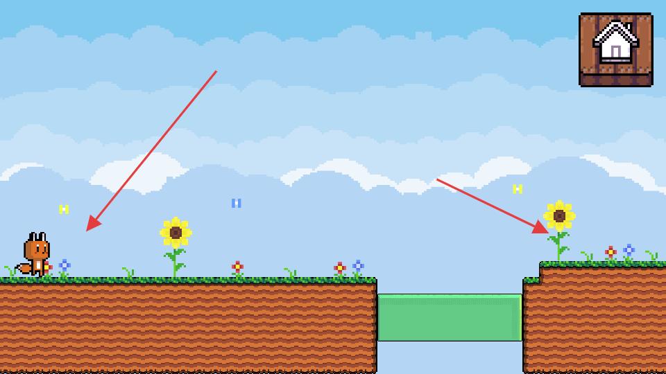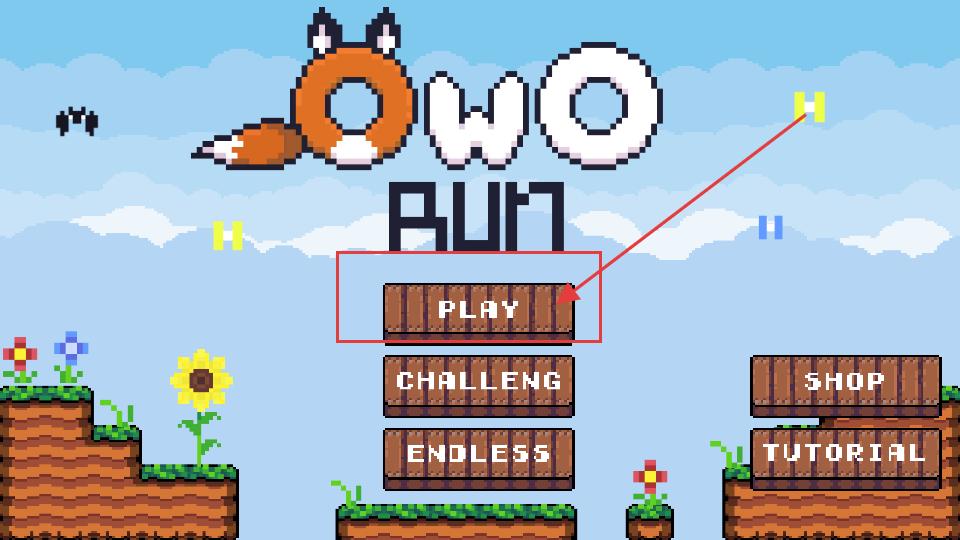 1、點(diǎn)擊界面里的PLAY按鈕,進(jìn)入游戲場(chǎng)景,像素風(fēng)格的狐貍角色出現(xiàn)在起始平臺(tái),周圍有花朵和道具,準(zhǔn)備開啟奔跑冒險(xiǎn)。