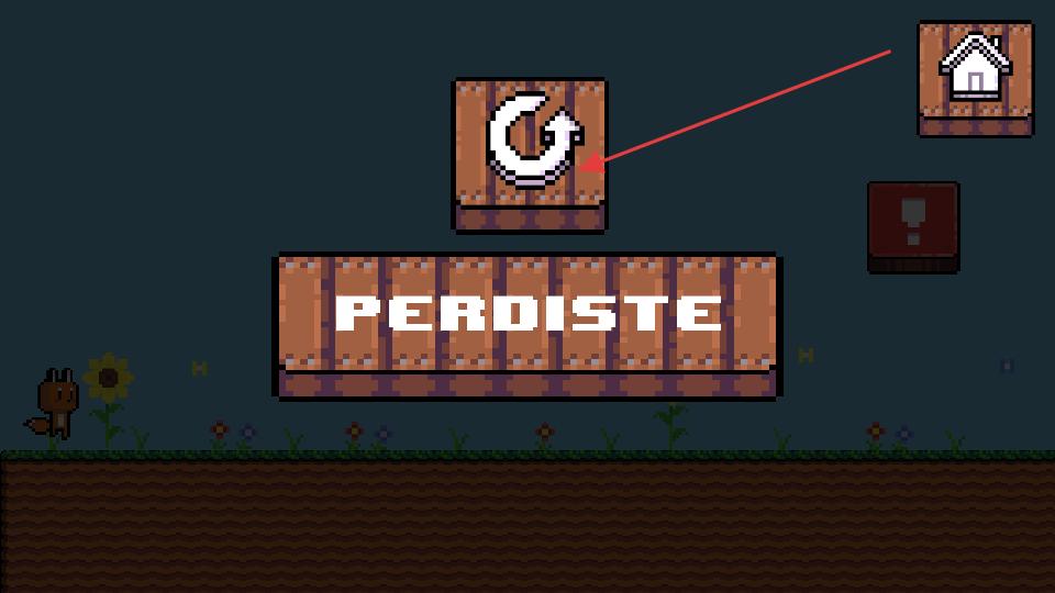 4、若游戲失敗界面顯示PERDISTE,點(diǎn)擊帶有重新開始圖標(biāo)的按鈕,重新進(jìn)入游戲場(chǎng)景,再次嘗試操控狐貍角色,積累經(jīng)驗(yàn)以順利通關(guān)。