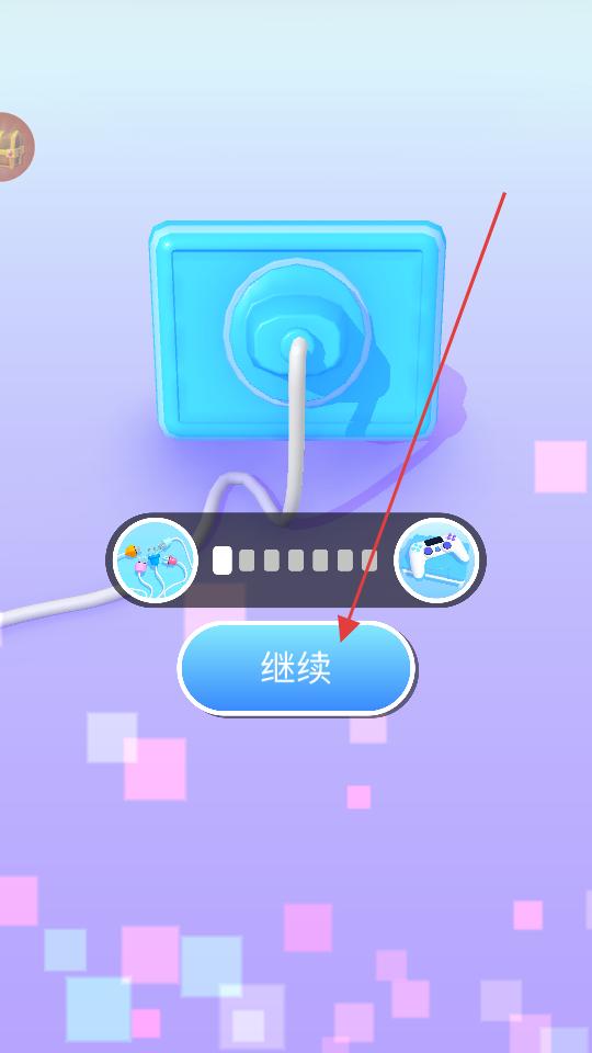 3、完成插頭插座連接后界面會跳出繼續(xù)的按鈕,點擊該按鈕重新進入新的插頭插座連接關(guān)卡,繼續(xù)挑戰(zhàn)。