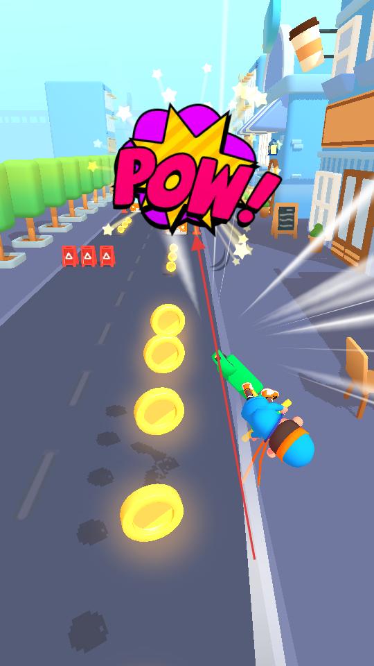 4、若在跑酷中不慎碰撞障礙,角色會出現(xiàn)特效反饋,但仍可繼續(xù)前進,接著收集后續(xù)的金幣,持續(xù)推進在城市街道的滑板跑酷冒險進程。