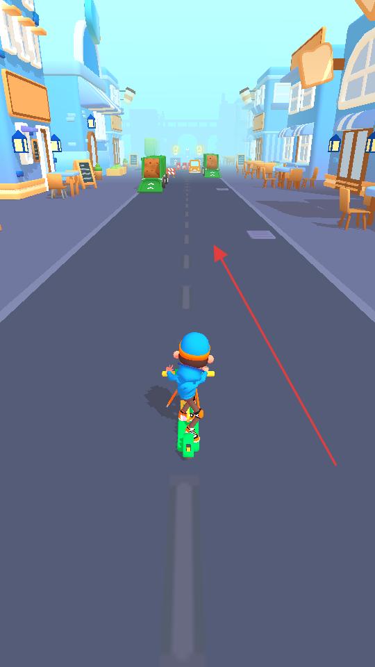1、進入游戲后操控角色在城市街道上滑板前進,留意前方道路的障礙物分布,通過操作調(diào)整角色位置,避開初始出現(xiàn)的障礙,保持滑板平穩(wěn)行進。