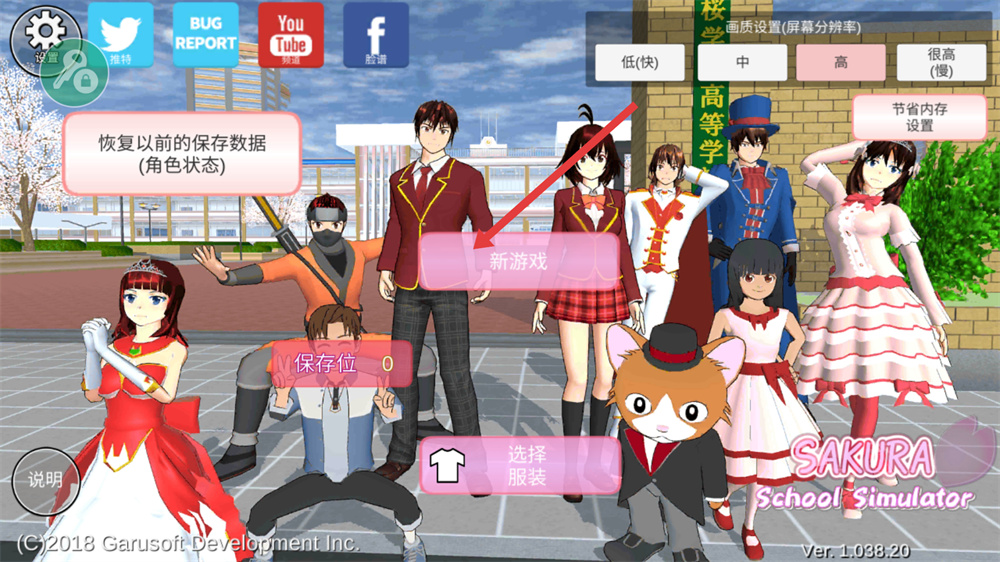 1、點擊新游戲按鈕,進入游戲場景,此時會看到校園環(huán)境,玩家將以學生身份開啟校園生活,可自由探索校園的各個區(qū)域。