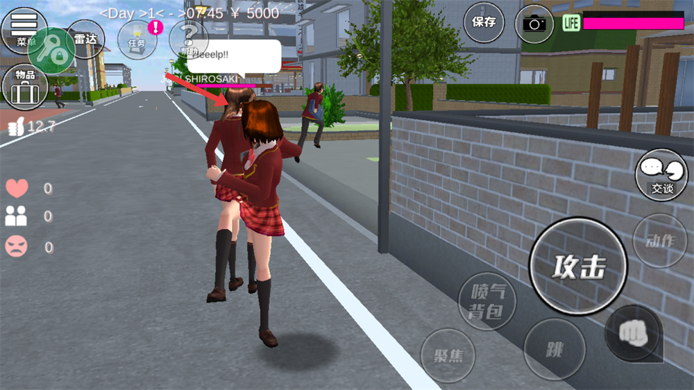 2、在校園中遇到需要互動的對象時,點擊攻擊按鈕,可與對方進行互動,互動過程中能體驗不同的校園事件。