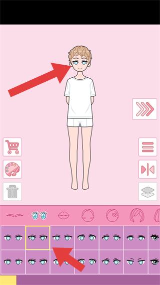 1、可看到角色形象,下方有眼睛等裝扮選項,點擊喜歡的眼睛樣式,就能為角色更換眼睛,打造不同眼部外觀。