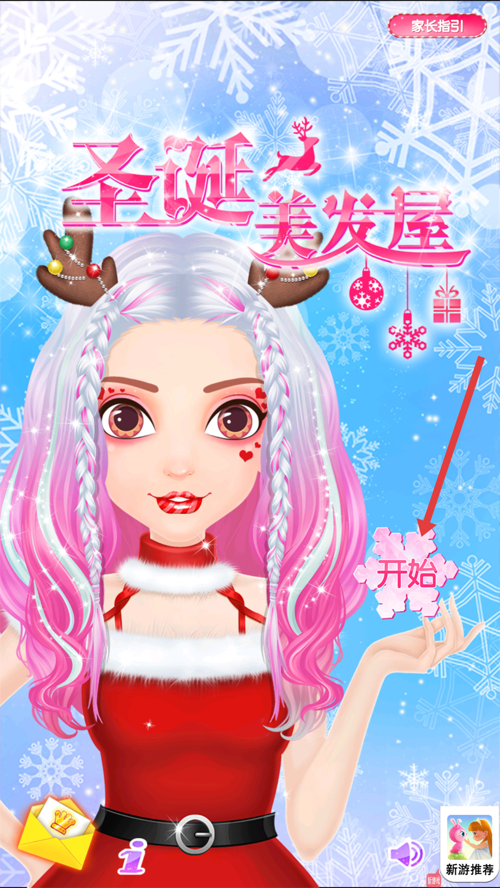 1、進入游戲后,點擊帶有雪花圖案的開始按鈕,進入美發(fā)造型界面,準備為角色打造圣誕主題發(fā)型。