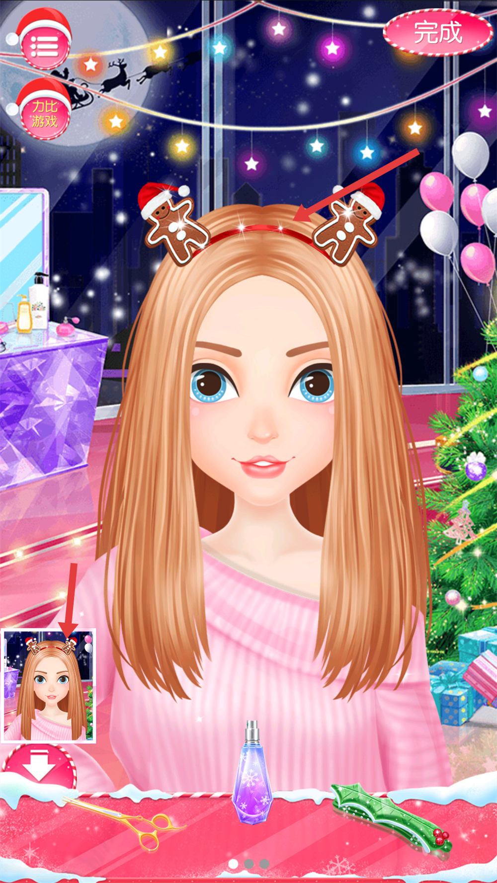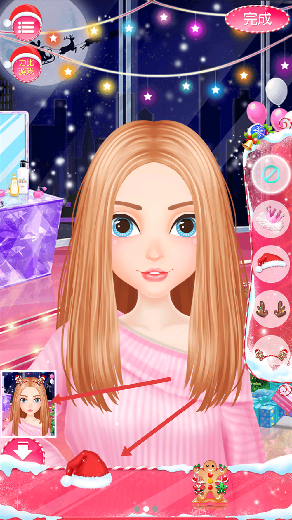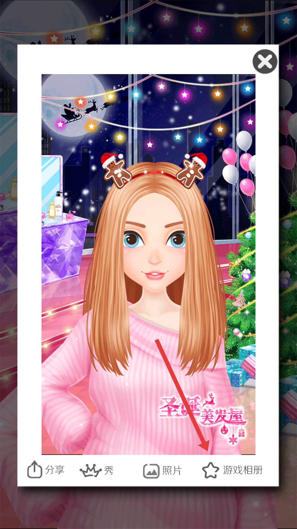 4、完成發(fā)型和配飾的打造后,可點擊相關按鈕,將最終的圣誕美發(fā)造型保存到游戲相冊,方便后續(xù)查看或分享。