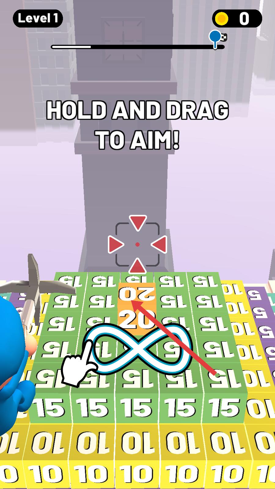 3、繼續(xù)依據(jù)文字提示,瞄準(zhǔn)帶有數(shù)字的方塊區(qū)域,發(fā)射工具擊碎方塊,積累分?jǐn)?shù)等資源。