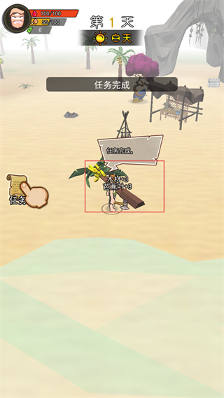 3、玩家操控人物靠近樹木進(jìn)行砍伐,完成任務(wù)后可以解鎖新的材料,幫助玩家更好地在荒島上生存下去。
