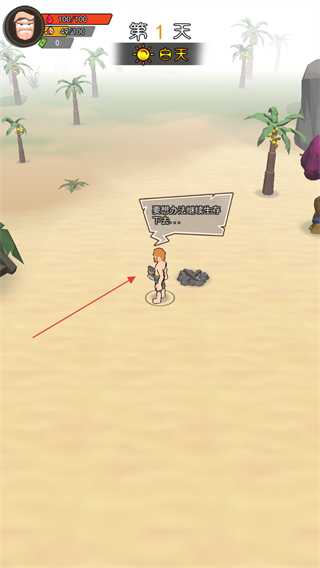 1、進(jìn)入游戲在初始的荒島場景中了解到首要目標(biāo)是想辦法繼續(xù)生存下去,為生存行動做準(zhǔn)備。